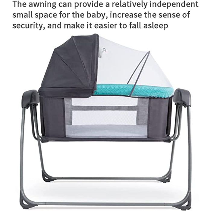 Versatility: This 4-in-1 bedside crib offers versatility by allowing you to switch between a swing, bedside bed, sleeping basket, and play bed. The lower space of the rocking bed can be expanded to serve as a play bed, offering more utility.