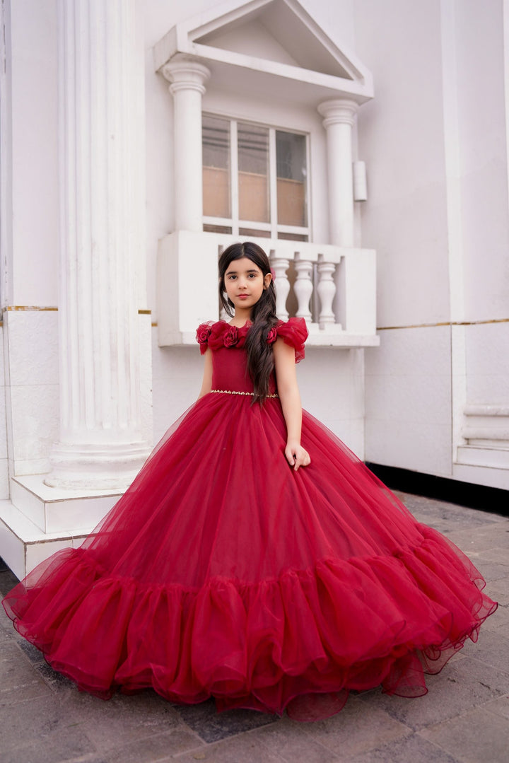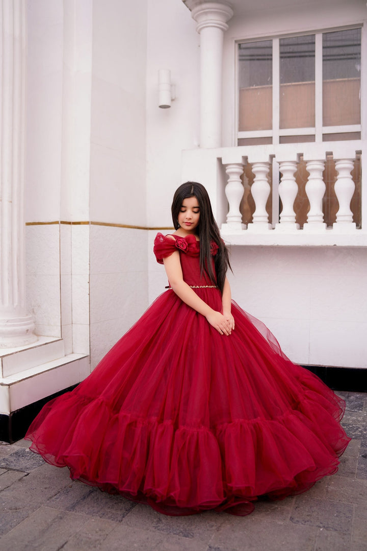 "Embrace timeless elegance with the Crimson Blossom frock from our luxury collection. Featuring a rich Mehroon hue and crafted with silk and net, this frock is a perfect blend of tradition and modernity."