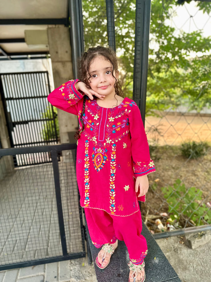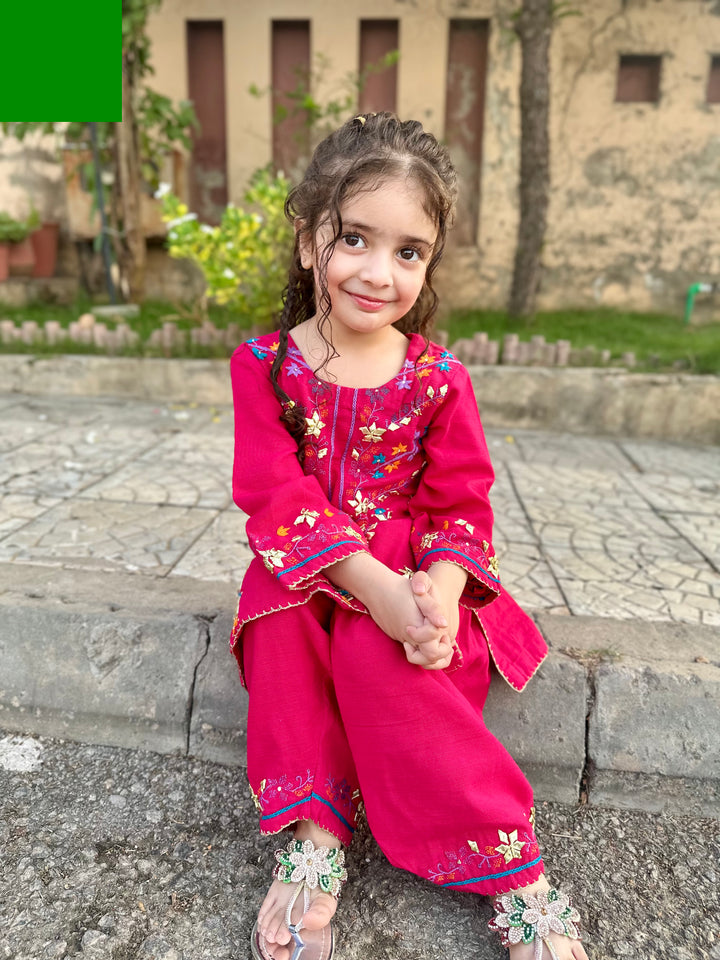 Bright, bold, and full of charm — this stunning fuchsia embroidered suit is made for your little fashionista! 🌸