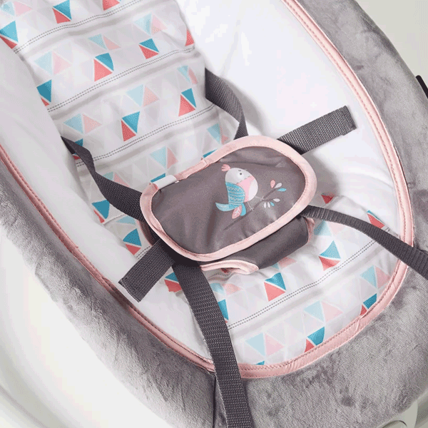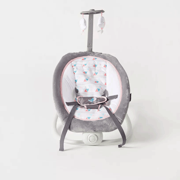 The rocking chair is equipped with an electronic unit with vibration and music, which will allow even the biggest fidget to get sick. An arc with hanging toys will entertain the child and allow you to go about your business. The chair is made of fabric that is pleasant to the touch.