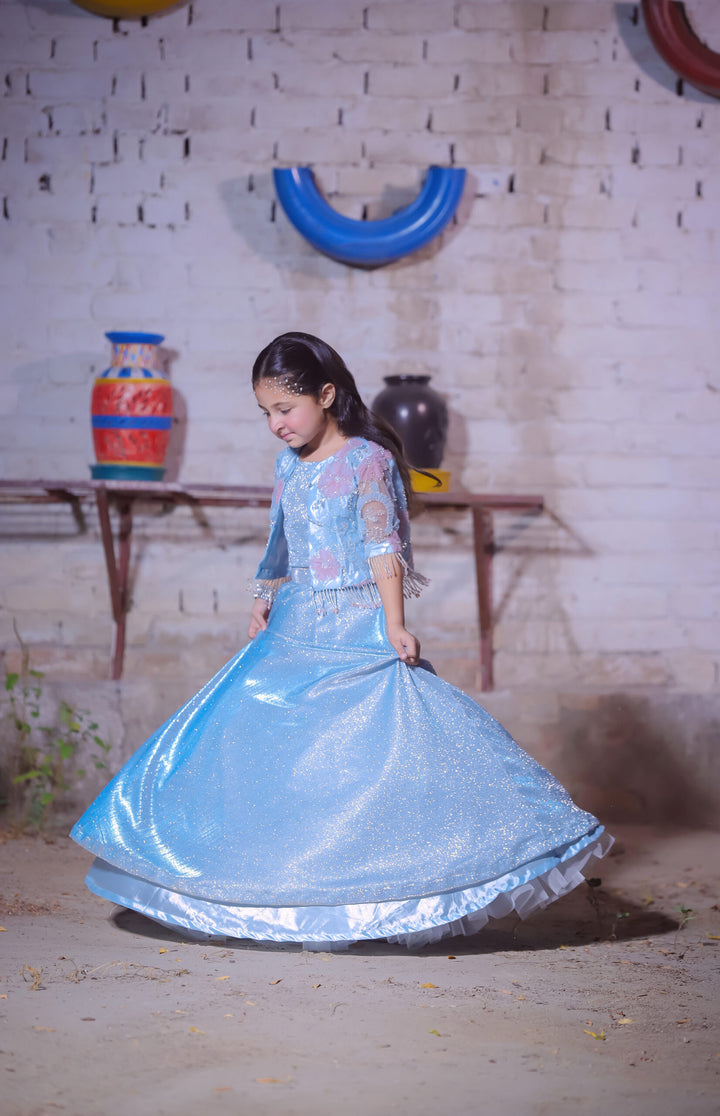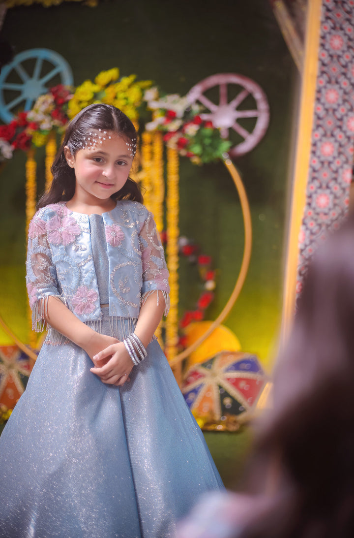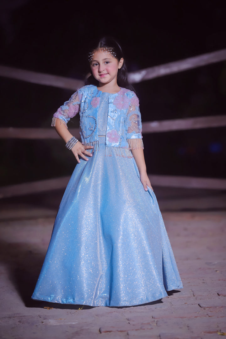 Number of Pieces: Paired With Embroidered Cut Moti And 3rd Floral Jacket With Hand Made Crystal Work