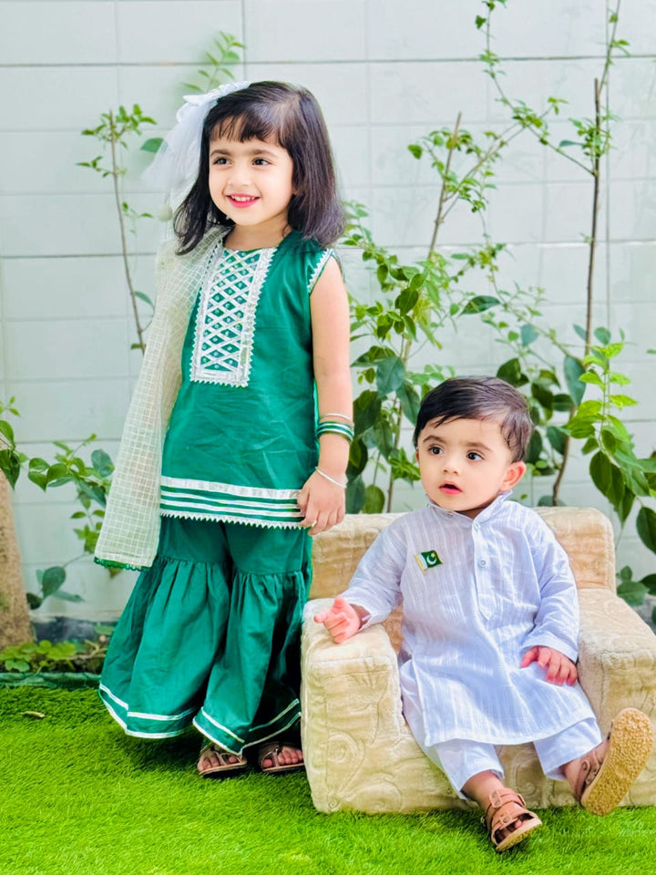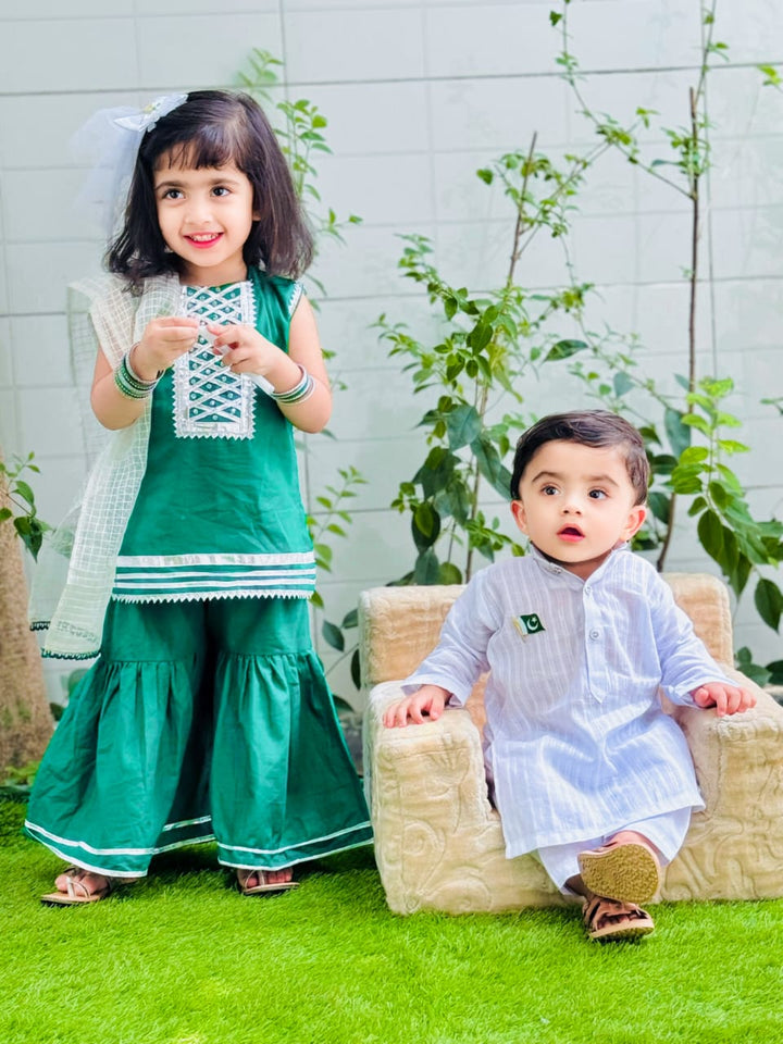 Celebrate independence in style with the Green Azadi Dress, designed to embody elegance and cultural pride. Crafted with attention to detail, this dress features a vibrant green hue symbolizing growth and harmony. Its comfortable fit and quality fabric make it ideal for festive occasions, allowing you to express patriotism while enjoying all-day comfort. Perfect for formal events or national celebrations, this dress combines tradition with contemporary design for a distinguished look.